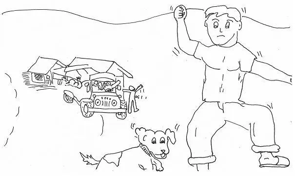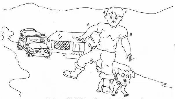Because of pushing Espen, it was his dog that was run over by the truck.