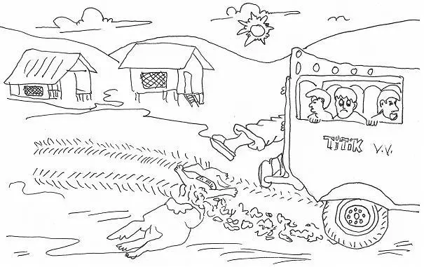 Because he was very drunk, he did not see that a truck was coming close to him.